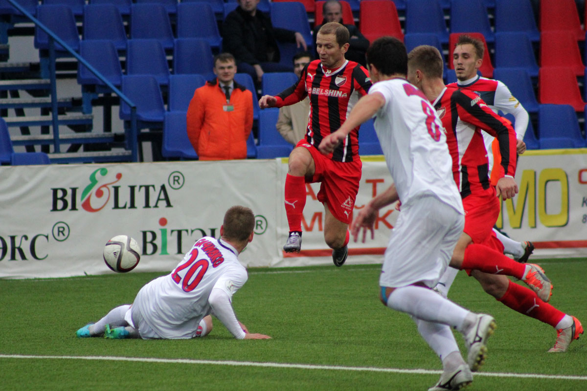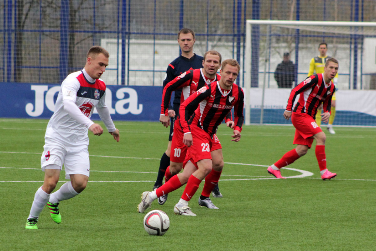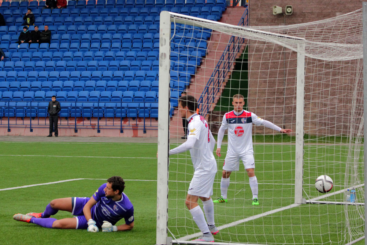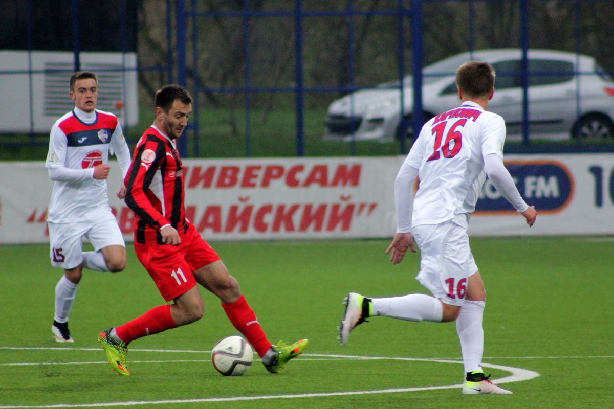 Пропущенный гол не повлиял на действия хозяев. Они продолжали наседать на ворота "красно-чёрных". Создали пару опасных моментов на 11-ой минуте. Концевой выбил мяч из-под ноги собиравшегося поразить ворота Макарова, а в следующей атаке Карпович, выйдя один в один с Панкратовым, пробил с острого угла мимо ворот.