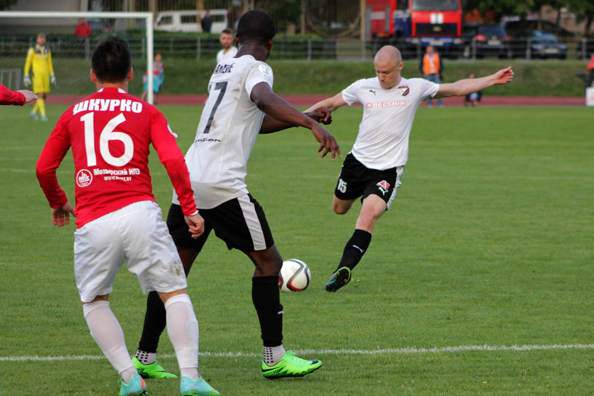 Мозыряне, несмотря на статус гостей, с первых минут большими силами двинулись вперёд. Столь резвое начало привело к первому опасному моменту. На 10-ой минуте Лемиечевский вышел по центру на перспективную позицию и мощно пробил низом. Только отчаянный прыжок Амельченко спас бобруйчан от серьёзных неприятностей и заставил задуматься.