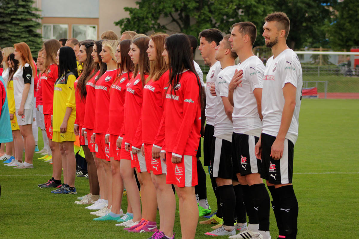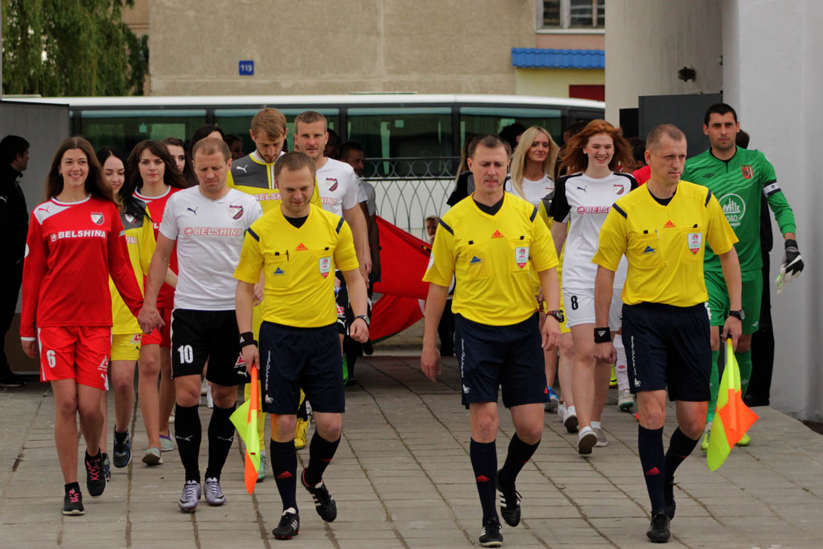 В преддверии матча, на стадионе "Спартак", ФК "Белшина" и участницы конкурса красоты "Мисс Бобруйск - 2016" провели необычную рекламную акцию. Девушки вышли на футбольное поле, чтобы поддержать спортсменов. Как саркастично заметил один из коллег по журналистскому цеху: "Женщины на футбольном поле – быть беде". Впрочем, до драматичной финальной развязки матча на беду ничего не указывало.