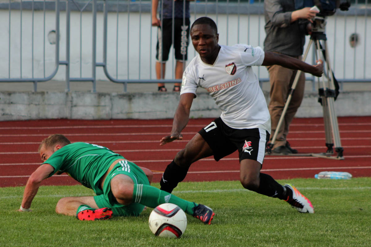 Ещё до перерыва бобруйчане могли сравнять счёт. Булыга прострелил вдоль ворот. Фамейе, дежурившему на ближней штанге, оставалось лишь лёгким касанием переправить мяч в ворота. Но увы, нога ганского легионера "Белшины" так и не встретилась с "пятнистым".