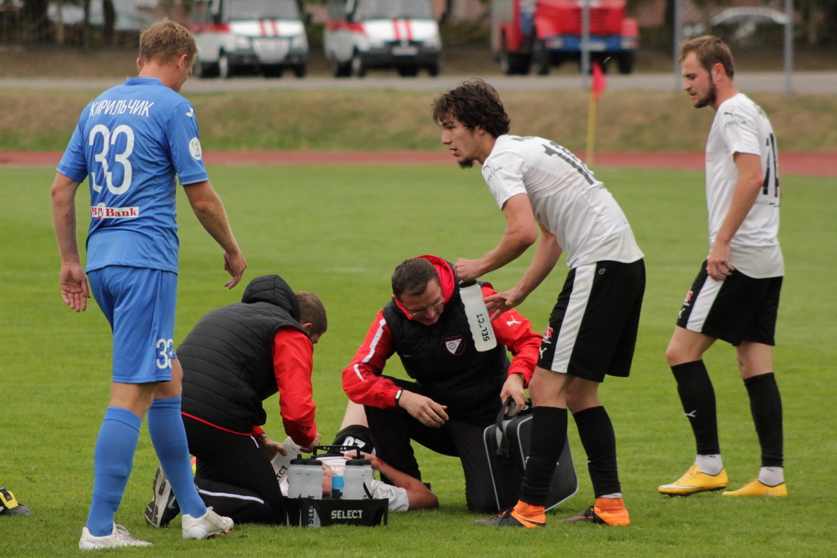 Переломной в матче стала 35-ая минута, когда в борьбе на втором этаже Сквернюк и Рыжко жёстко столкнулись головами, после чего полузащитник бобруйчан вынужден был покинуть поле. Ещё одна вынужденная замена в составе "красно-чёрных" произошла в перерыве. Вместо Гречишко, впервые на поле в составе бобруйчан вышел Валерий Карницкий.