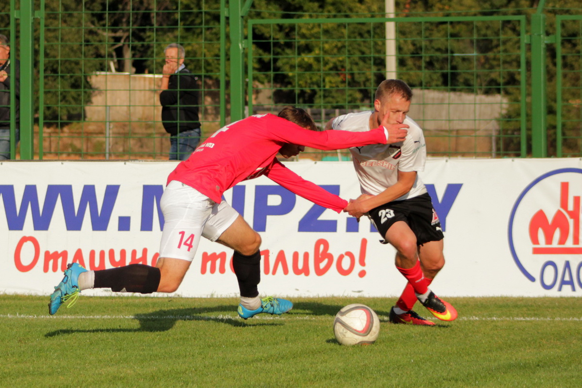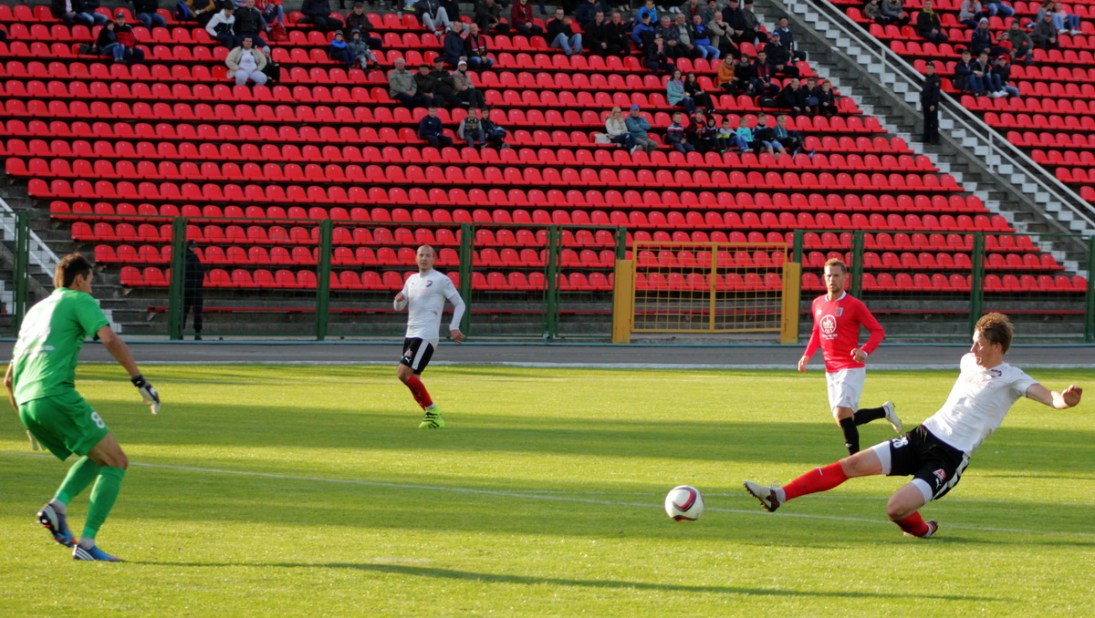 Отчёт о матче начну с кадровых проблем. У бобруйчан вне заявки остались Ясинский (перебор карточек) и Гречишко (травма), у мозырян не смогли помочь своей команде: Раевский (лишние карточки), Мосемгвдлишвили, Сулим и Годованый (у троих – травмы). Да и сам главный тренер "Славии", Юрий Пунтус по причине дисквалификации наблюдал за матчем в дали от технической зоны.