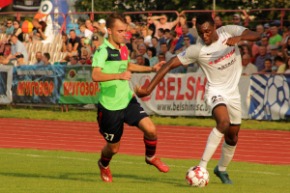 Между этими эпизодами на 23-й минуте бобруйчане создали первый острый и одновременно спорный момент. Кухарчик по левому флангу ворвался в штрафную и когда был готов пробить, не без помощи защитников, упал на газон. Несмотря на апелляции партнёров, арбитр предложили хавбеку "Белшины" подняться и продолжить игру.