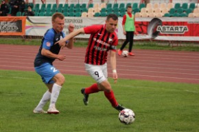В свою очередь гости, в первой половине встречи, проводили больше позиционных атак и имели небольшое преимущество в контроле мяча, при этом на острие выглядели немного инертно. Пожалуй, самый опасный момент произошёл на 30-й минуте, когда Санец откликнулся на передачу с глубины поля и оказался с глазу на глаз с предусмотрительно покинувшим рамку Туранком. В жёстком столкновении пострадали оба, а голкипер "красно-чёрных" увидел жёлтую карточку. Через несколько минут Голенко слева вырезал передачу на дальнюю штангу, где только самоотверженные действия защитника не позволили Кухарчику распечатать ворота.