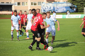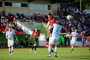 Уже на 4-й минуте первого тайма, после исполнения штрафного гостями, в великолепном сейве переведя мяч на угловой, спас наши ворота Сергей Туранок. А вот уже после розыгрыша динамовцами углового, голкипер «красно-черных» был беспомощен – счет в матче открыл №15 гостей Владислав Климович. На 30-й минуте отличный шанс сравнять счет имел Владислав Соланович, однако после его дальнего удара мяч пролетел чуть левее рамки. А на перерыв команды ушли при счете 0:2 не в нашу пользу – мяч «в раздевалку» забил Масиэль Соуза Данило.