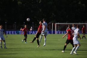На отчетный матч бобруйчане вышли в следующем стартовом составе: №13 Алексей Харитонович, №4 Владислав Соланович, №5 Константин Кучинский, №8 Сергей Глебко, №9 Леонид Ковель, №18 Роман Салимов, №23 Cамуэль Одеоибо, №25 Михаил Башилов, №28 Родригес Нивалдо, №32 Владислав Ясюкевич и №69 Никита Рочев.Началась встреча довольно живо, мяч практически не задерживался в центре поля, а «гостил» то у одних, то у других ворот. И уже на 12-й минуте голкипер «красно-черных» Алексей Харитонович был вынужден доставать его из сетки своих ворот. У хозяев с передачи Богомольского отличился Абдулайе Диалло. Реальный шанс сравнять счет бобруйчане имели на 33-й минуте, когда после передачи Сергея Глебко по воротам брестчан пробил капитан нашей команды Леонид Ковель – здорово сыграв, выручил свою команду вратарь «Руха». А вот хозяева за две с половиной минуты до окончания основного времени первого тайма свой шанс не упустили, и вышедший на замену Ярослав Орешкевич сделал счет 0:2. Казалось бы при таком счете команды и уйдут в раздевалку, но… на 45-й минуте с угла штрафной площадки в дальний от Харитоновича угол закрутил мяч Владислав Васильев – 0:3.