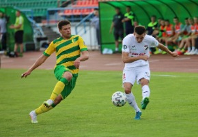 Первая 45-минутка началась без всякой раскачки и разведки. Атаки следовали то на ворота одной, то другой команды. Многие из них заканчивались ударами. К примеру, на 27-й минуте, во время очередной вылазки к воротам гостей правым флангом, после передачи Дмитрия Рекиша, реальный шанс открыть счет в матче имел Нивалдо Родригес. Но после его удара мяч угодил в перекладину ворот «Немана». А вот на 29-й минуте противостояния, во время атаки уже на ворота «красно-черных», не совсем удачно сыграл наш защитник Максим Грек, сбрасывая мяч головой голкиперу Алексею Харитоновичу. Этим не преминул воспользоваться №7 гостей Гегам Кадимян – перебросив мяч через нашего вратаря, открыл счет в матче – 0:1. Спустя десять минут из-за пределов штрафной опасно пробивал по воротам соперника Денис Левицкий, однако голкипер гостей парировал этот удар.