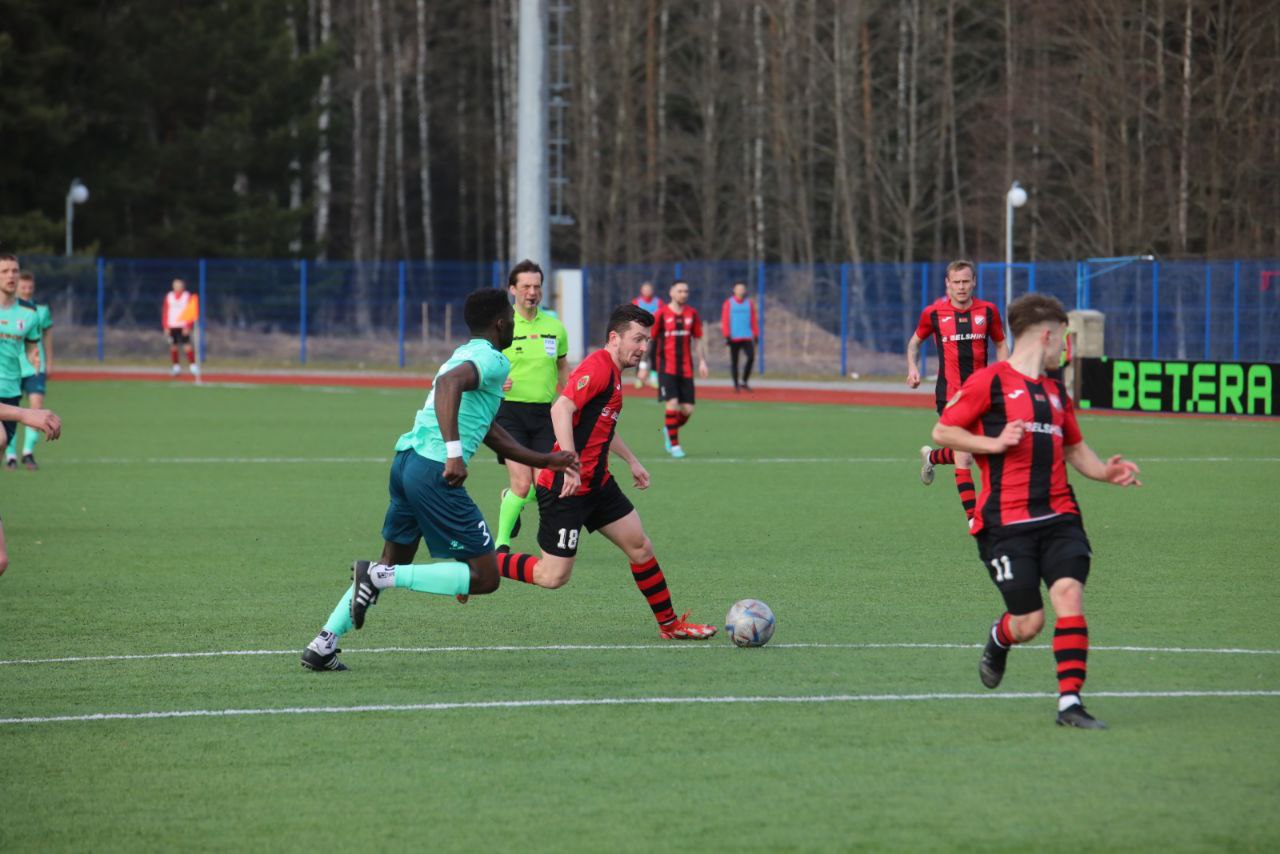 Вторая 45-минутка началась с атак «красно-черных». На 49-й минуте чуть выше перекладины пробил Михаил Колядко. На 63-й после удара с линии штрафной Иваном Юриным, свои ворота в очередной раз спасает Охремчук, переводя мяч на угловой. А за шесть минут до окончания основного времени матча ФК «Сморгонь» вышел вперед – со штрафного удара отличился вышедший на замену Матвей Дуксо. Как ни старались гости в оставшиеся минуты сравнять счет, матч так и завершился – 0:1 не в нашу пользу.