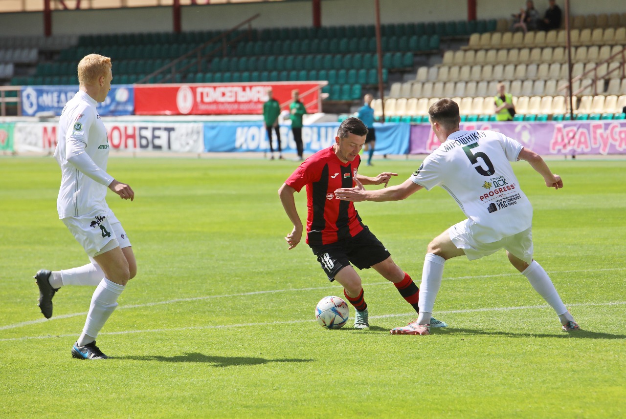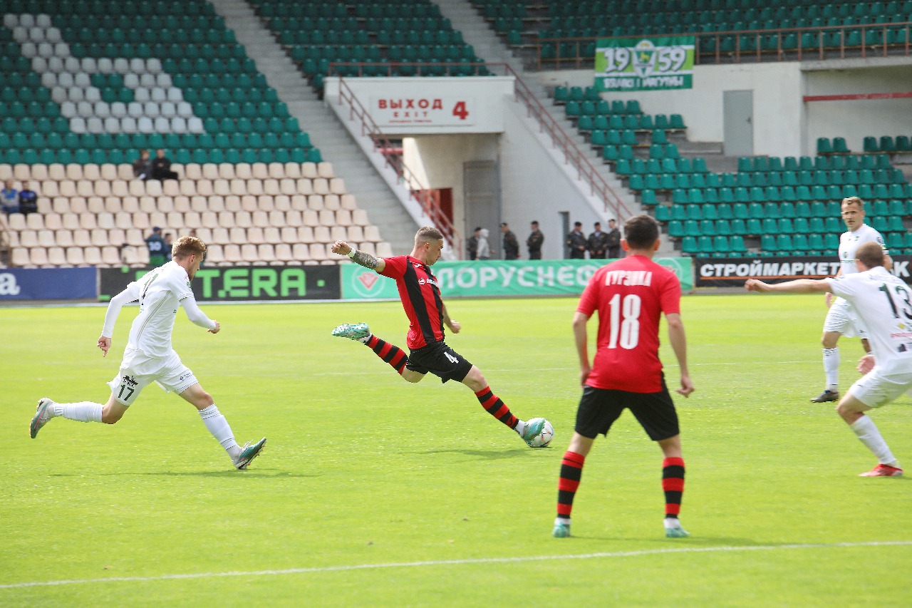 Футбольный матч, как известно, состоит из двух таймов. Матч «красно-черных» с «Гомелем» состоял из двух совершенно разных таймов. В первой 45-минутке инициатива полностью была за хозяевами. Как следствие – счет на табло 0:2 не в нашу пользу. У «Гомеля» на 8-й минуте отличился Александр Ануфриев, а на 40-й дальним ударом – Илья Алексиевич.